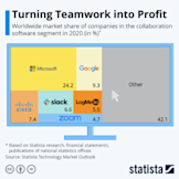 O mercado mundial de softwares para trabalho remoto está dividido assim (dados mais recentes, de 2020).