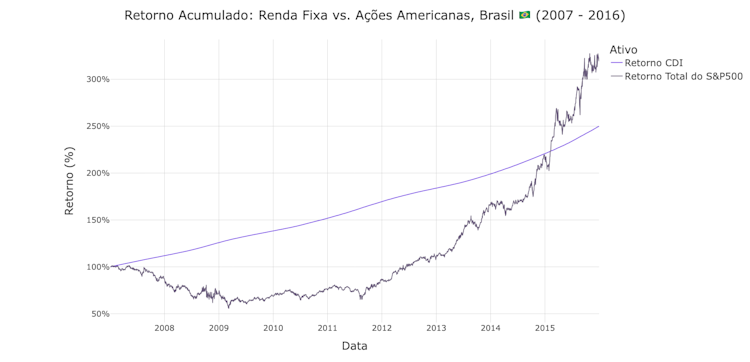 Nesse contexto, você escolhe os retornos suaves, previsíveis e altamente atrativos da renda fixa local? Ou abraça a volatilidade de um mercado de alta histórico americano para capturar um crescimento ainda maior e proteger seu risco cambial?