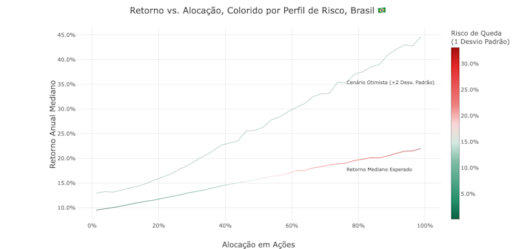 Eixo X: Quanto da sua carteira está em ações americanas (de 0% a 100%).